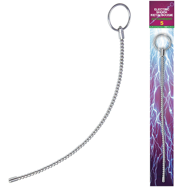別売りの「エレクトリックショックコックループ&ブジー」に接続して好みのサイズで楽しめる「エレクトリックショックメタルブジー アタッチメント5」。 前立腺までリーチする余裕のある長さの専用ブジーアタッチメントで、よくしなるビーズ状の超ロングボディは奥までしっかり挿入可能♪重厚感のあるマニア垂涎のメタルボディで、全体からビリビリと痺れる様な電撃低周波パルスにより本格的な尿道プレイをお楽しみいただけます。