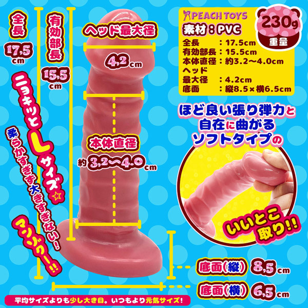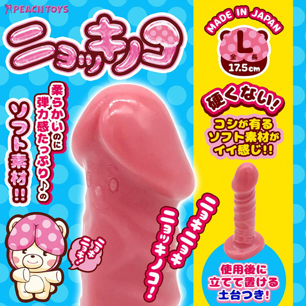 柔らかいのに弾力感たっぷり♪ソフト素材のピンクカラーディルド!「ニョッキノコ(ソフトピンク)L」ニョキッとLサイズのディルドが登場です。 ●使用後に立てて置ける土台つき。 ●柔らかいのに弾力感たっぷり♪のソフト素材。 ●ほど良い張り弾力と自在に曲がるソフトタイプのいいとこ取り。 ●硬くない!コシが有るソフト素材がイイ感じ。 ●素材:PVC。 ●MADE IN JAPAN