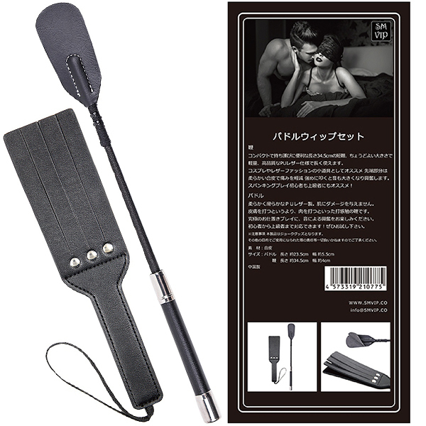 大きなパドルで強烈な打音を楽しみながら、乗馬鞭の打面で鋭利な痛感も味わえる「<SM VIP>パドルウィップセット」。 プレイシーンに応じてグッズを使い分けられるから緩急のついた刺激が味わえる!どちらもフェイクレザー素材をベースに作られているのでそれぞれ異なる打責めがお楽しみ頂けます♪パドルは定番の形状で快音を発しやすく鞭はショートスケールで痛感が高め。 2タイプセットで合皮素材ながらも機能性抜群!痛感を伴うプレイにチャレンジしたくなったらぜひどうぞ♪
