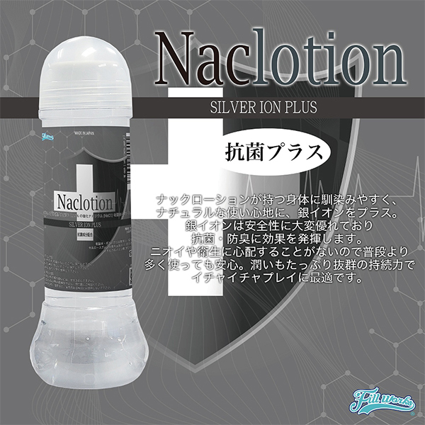 テクスチャー以外のプラスαにまでこだわったナックローションが持つ身体に馴染みやすくナチュラルな使い心地に銀イオンをプラス。 銀イオンは安全性に大変優れており、抗菌・防臭に効果を発揮します。 ニオイや衛生面に心配することがないので普段より多く使っても安心。 潤いもたっぷり抜群の持続力でイチャイチャプレイに最適です。 体臭の気になる方にはもちろんオナホールへの使用にも!<成分>精製水、ポリアクリル酸Na、塩化Na、銀、セルロースガム、炭酸水素Na、EDTA2-Na、ブチルカルバミン酸ヨウ化プロピニル