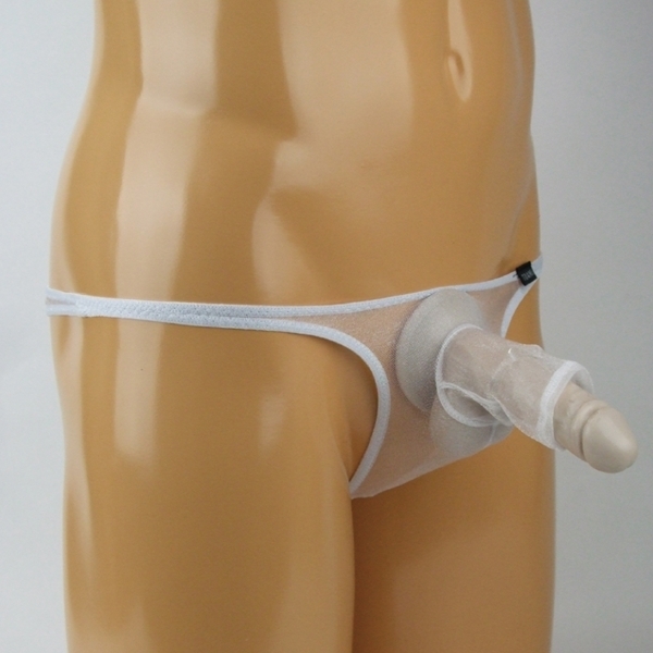 > メンズ キラキラスケスケ生地ゾウさんイボイボリング付きTバック (ホワイト)