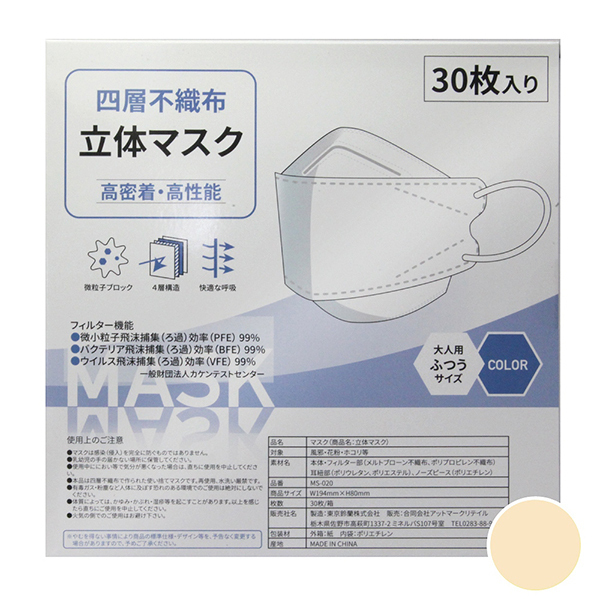 > 四層不織布立体マスク 30枚入り (ハニー)