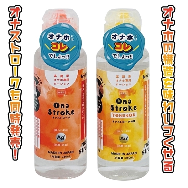オナホールにはコレでしょう!「もっともっと!more stroke!」高潤滑オナホ専用ローションです♪「オナストローク」「オナストローク特濃」の2タイプがリリースされていて、こちらは濃厚なテクスチャタイプ。 安心のヴァージンキャップを採用していて、糸引きが少なめなので扱いやすく、ハード素材のホールでも快適な滑りが楽しめます!安心の日本製でヒアルロン酸、アロエエキス、カキタンニンエキス、ニンニクエキスを配合。 <成分>ヒアルロン酸、アロエエキス、カキタンニンエキス、ニンニクエキス配合
