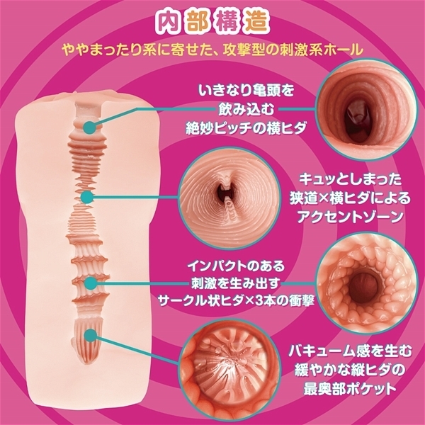 日本製最高品質のエラストマーを使用した非貫通オナホ「誘惑サーキュレーション」。 挿入深度によってヒダの気持ちよさがどんどん変わる!ずっしり肉厚で迫力の410gが織りなす攻撃型の刺激系オナホとなっています♪伸縮性や耐久性も良く、2本の縦ヒダによる鋭いインパクトと3連続の太いリングヒダが亀頭を徹底的に刺激!魔性の搾精ヒダギミックが随所に散りばめられた内部構造とサークル状のヒダがたまらない!素材、硬度、内部構造、どれをとってもバランス良く造られたヒダ重視の非貫通オナホ♪魔性の淫惑ループを存分にお楽しみ下さい。 ローション付。