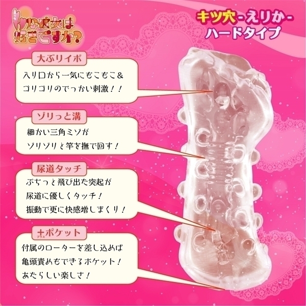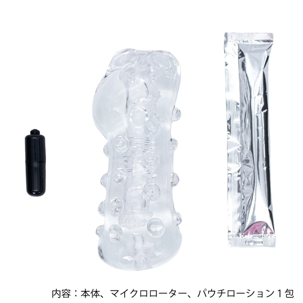 快感・尿道タッチ!ハードな高弾力!入り口から大ぶりなイボがゴリゴリ刺激!中盤に細かい三角溝がゾリゾリと竿を撫で回す!そして奥はプチっと突起が尿道に優しくタッチ!最奥ポケットに付属のローターを差し込み亀頭に高刺激振動で更に快感増!!!