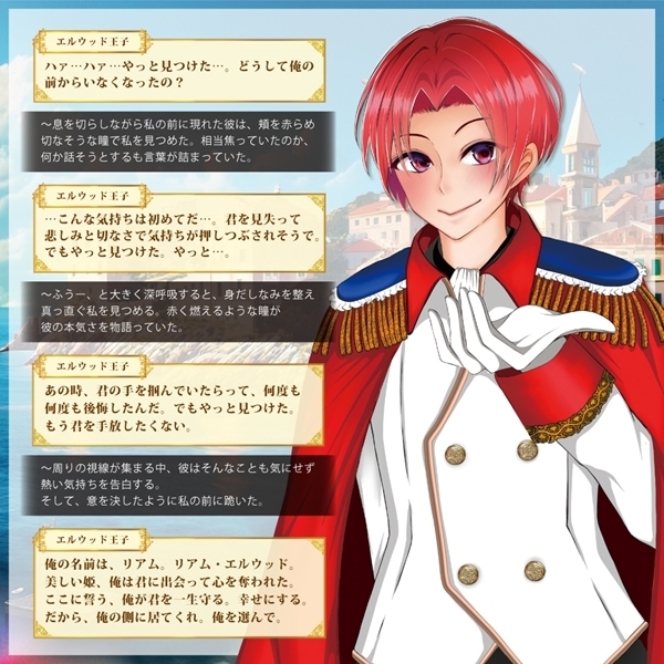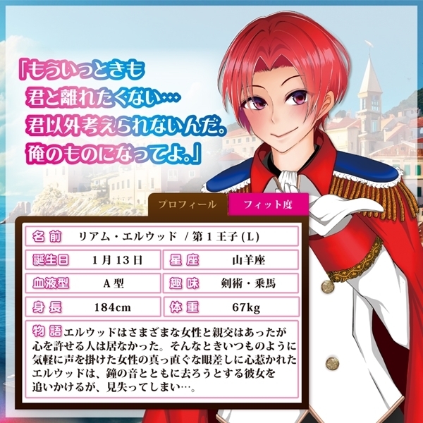 これは貴方だけの物語…。 不思議な魔法使いに導かれ、お城の舞踏会へ参加することとなった貴女は運命の王子様に出会います…。 選ぶのは貴女自身。 さあ、運命の王子様はだれ…?◆リアム・エルウッド第1王子◆俺様だけど一途に貴女を愛してくれる誠実系男子。 ちょっと強引だけど男らしくエスコートしてくれる彼のように、身も心もいっぱいにしてくれるサイズ感。 初めては不安でも、次第に手放せなくなってしまうのが彼の最大の魅力。 子犬のように寂しがり屋の一面も…?!