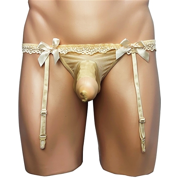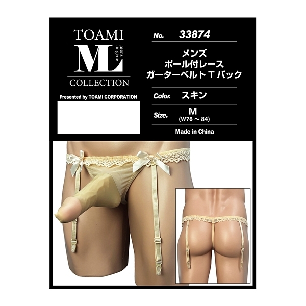 > メンズ ポール付レースガーターベルトTバック スキン