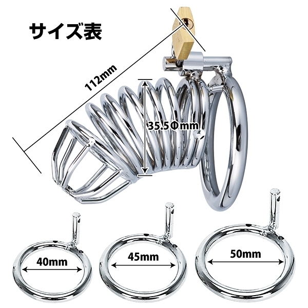 鉄の輪が連なった男性用の本格貞操帯の固定リングが3種類に増えて再登場!南京錠を掛けると、勝手に外すことは不可能!勃起は無論不可能。 日常的につけ射精管理を行えます。 付けたまま排泄も可能です。