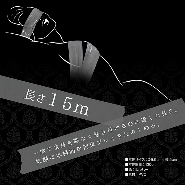 SMプレイの必須アイテム<ボンデージテープ>!気分で色を変えたいお客様の声にお応えし女体を彩る業界最多の7色をラインナップ!ノリを使わない万能テープで服や髪・肌を傷めず、お手軽カンタン拘束プレイ!濡れてもくっつく不思議な万能テープ科学の力でテープ同士が吸着。 ベタつかないので片付けも簡単。 髪や肌、繊細なグッズやテーブルにも安心して使えます。 ●カラー:シルバー