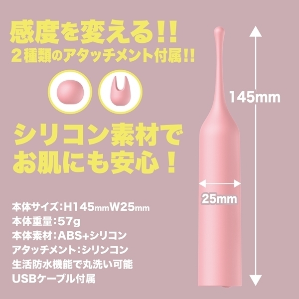 振動パターンも10種搭載、本体重量57gと超軽量で生活防水タイプの為、丸洗い可能。