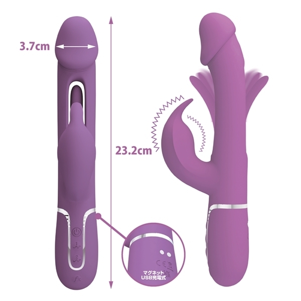 最高性能と快適さを兼ね備えた新感覚のバイブレーターです♪Gスポットを叩くような超刺激で、確実にクライマックスへ導きます!先端には柔らかなスーパーソフトシリコンを採用し、肌に優しい高品質な医療用シリコンで仕上げています♪4パターンのビート&リッキング機能と7種類の振動パターンで、好みに合わせた刺激を楽しめます!生活防水仕様なので、安心してお使いいただけます♪