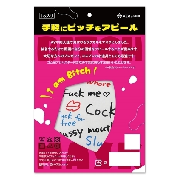 ビッチマスク(英語版)は、ユニークで目を引くデザインが特徴の大人専用マスクです♪同人誌やポップカルチャーの影響を受けたこのマスクは、インパクトのある英語フレーズが描かれており、個性をアピールしたい方に最適です!しっかりとした生地で作られており、耳掛け部分には長さを調整できるアジャスターが付いているため、フリーサイズで快適に装着可能です♪プレゼントやコスプレの小道具としてもおすすめで、ジョークグッズとして非日常を楽しむアイテムとしてご活用いただけます!