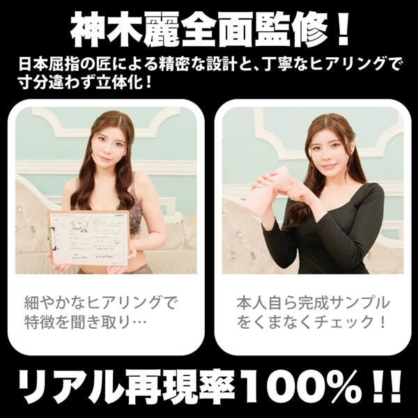 精密3Dスキャン技術を駆使して神木麗さんの美しいフェイスラインとリップを再現したオナホールです♪外観の美しさとともに、内部も緻密に設計されており、まるで本人と対面しているかのようなリアルな感覚が楽しめます!500g超のボリューム感と、人工粘膜による2層構造が心地よいフィット感を提供し、快適な使用感を実現♪フェラの技術を感じる構造で、奥深いところまで楽しむことができます!タイプは非貫通で、しっかりとした刺激が感じられる仕様です♪