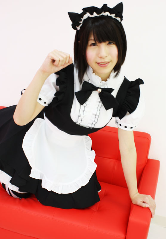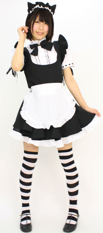 黒猫とメイド服がコラボしたとても可愛い「マオメイド M」。 ピンと立ったネコ耳カチューシャ、鈴付きのリボン、ブラウスの袖口にはハシゴレース+リボンのこだわりも!ミニ丈のメイド服が欲しい方には絶対お勧め!これであなたも可愛いネコメイドさんに変身です。
