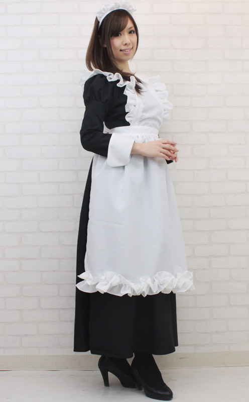 ここまでのロングはなかなかない!正統派メイドコスチューム。 上品で清楚なロングスタイルのメイド服が男性サイズで登場。 エプロンのフリルもボリュームいっぱいで可愛い!憧れのメイドに扮してご奉仕したい貴方に! ※水洗い不可、塩素系漂白剤による漂白不可、アイロンは中温で当て布使用、ドライクリーニング可、色落ちの可能性があります。