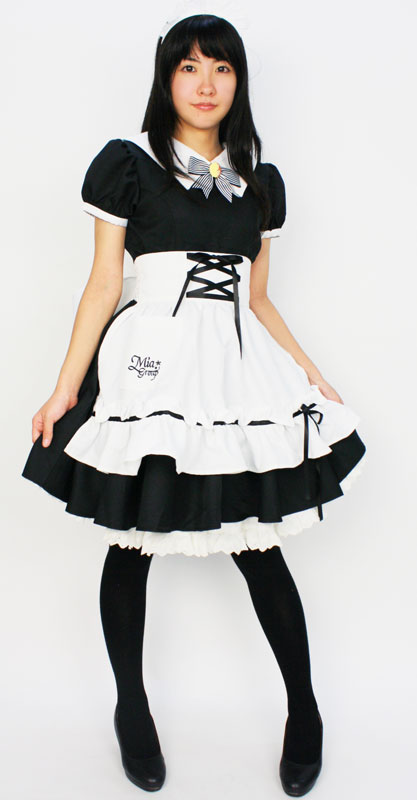 人気メイドカフェのオフィシャル制服「ミアリラクゼーション制服(S)」。 ボリューム感たっぷりのパフスリーブとフリルスカートがとっても可愛い、黒白カラーのメイドコスチューム!キュートな付け襟とエプロンも必見です。