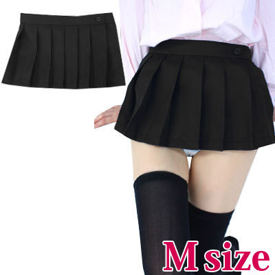 本格的な女子高生コスプレ!超ミニ丈の無地プリーツスカート(黒)。 制服コスチュームには欠かせない定番のプリーツスカートですが、この絶妙なスカート丈はなかなか無い逸品です!見せパンと併せれば可愛さも倍増! ※水洗い不可、塩素系漂白剤による漂白不可、アイロンは中温で当て布使用、ドライクリーニング可、色落ちの可能性があります。