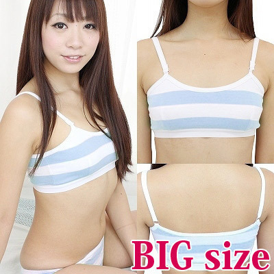 楽チン!かわいい!サックス×ホワイトのしましま柄スポーツブラ(BIG)。 太めのボーダーでピュア感たっぷり!もちろん肩紐の調節も可能です。 しまパンと併せれば萌え度もさらにUP!普段着やコスプレ衣装のお供にどうぞ。
