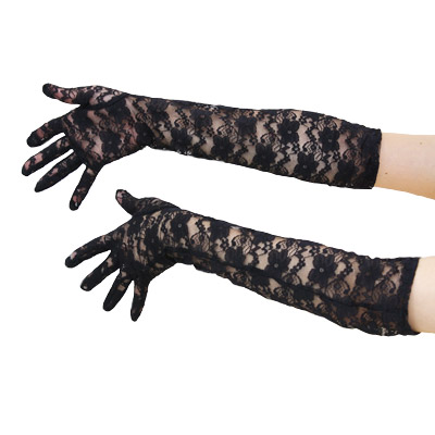 ブラックカラーの花柄レースで手元を美しく飾る、ロング丈のレース手袋。