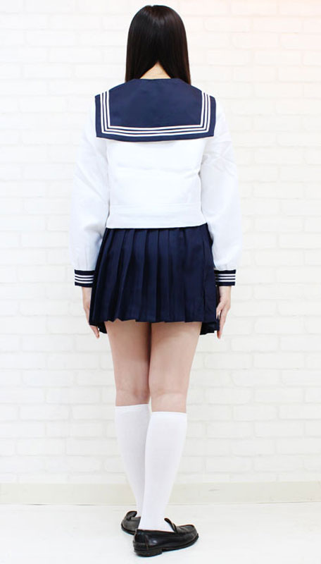 青いリボンが爽やか!春・秋仕様のキュートなセーラー服コスプレ。 3本ラインが特徴の上着はサイドファスナー付き、スカートはアジャスターでサイズ調節も可能!クオリティの高さが自慢の、お嬢様系スクール制服コスプレです。