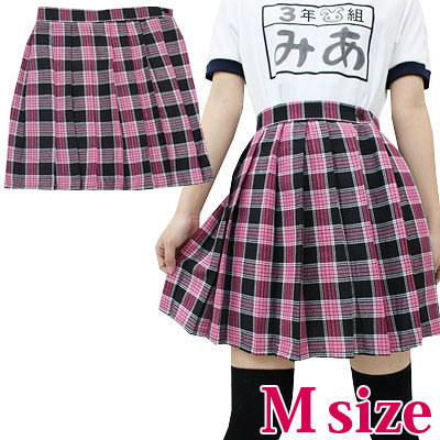 制服コスプレの定番アイテム!ピンクラメのチェック柄プリーツスカート。