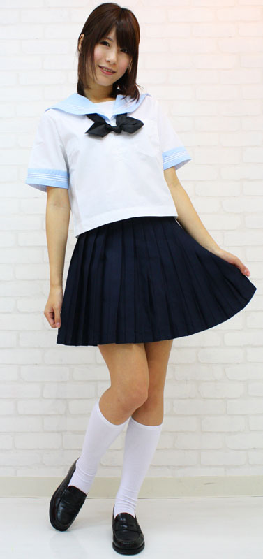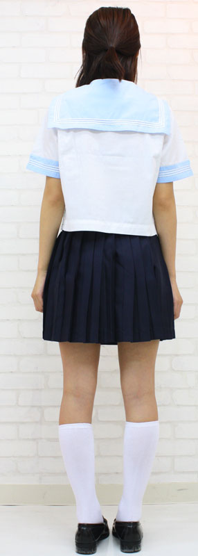 清楚な水色のセーラー襟が好印象!夏服仕様のセーラー服コスプレ。 爽やかカラーの上着はサイドファスナー仕様、スカートはアジャスター付きでサイズ調節も可能です。 スナップ留めのスカーフが可愛い、スクール制服コスチュームです。