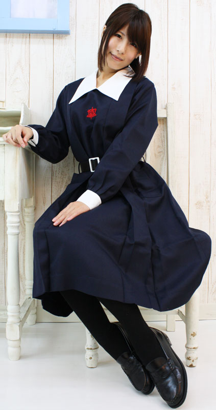 ワンピースタイプの制服で清純度アップ!冬服仕様の制服コスプレ衣装。 ワンピースはスナップボタンで着脱可能!胸元の真っ赤な刺繍と、ウエストマークの黒ベルトがアクセントに!しっかりとした作りが自慢のお嬢様風スクール制服です。
