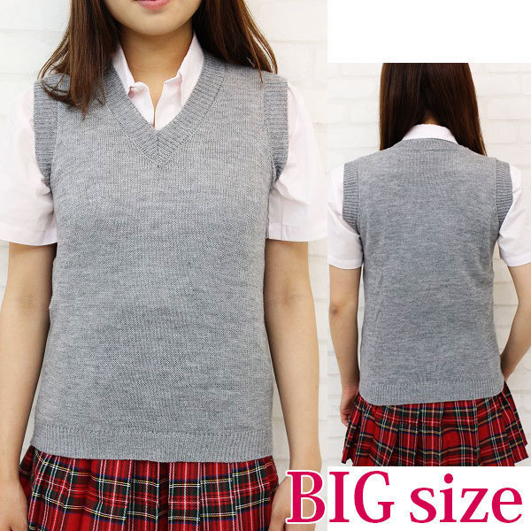 制服コスプレと相性抜群!オールシーズンOKなグレーの無地ニットベスト単品(BIG)。 マルチに活躍する定番のVネックベストは、ブレザーの下に着ても、そのまま白シャツに合わせても可愛い!1枚あると便利なコスプレ小物です。