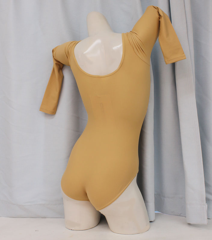 ボディラインを美しく見せる!伸縮性抜群のロングスリーブレオタード(M)。 シンプルなベージュカラーで、柔らかい生地だから着心地も良い!様々なシチュエーションで活躍するので、一着は持っておきたいセクシーコスチュームです。