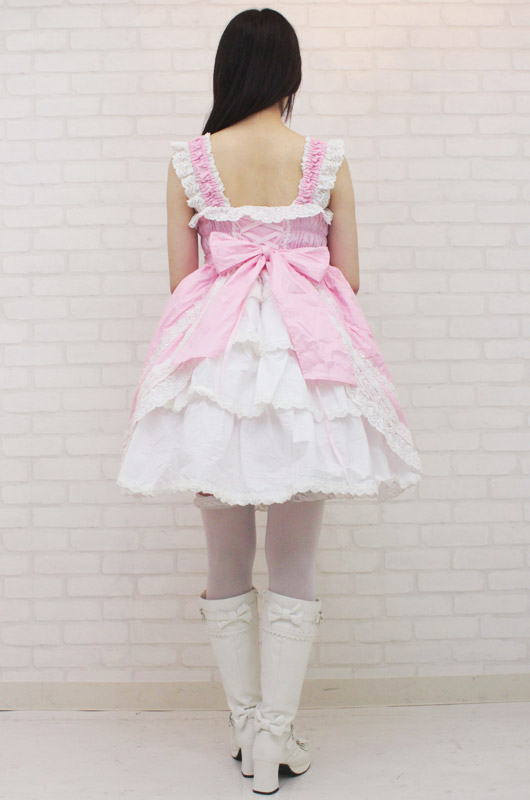 甘〜いロリピンクが可愛い!豪華なフリルレースで仕上げたシャーリングジャンパースカート(BIG)。 ボリュームのある後ろ姿が印象的!まるでお姫様のようなバックスタイルを演出します。 バスト部分はシャーリング仕様になっているので、着心地がよくフィット感も抜群です! ※水洗い不可、塩素系漂白剤による漂白不可、アイロンは中温で当て布使用、ドライクリーニング可、色落ちの可能性があります。