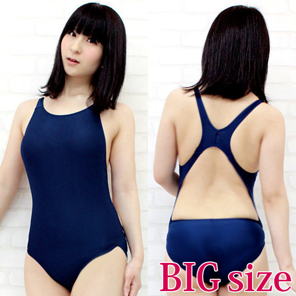 定番のネイビーカラーと正面から見た姿でシンプルな仕上がり!かと思いきや、大胆に露出したバックスタイルが、セクシーさ満点の競泳水着コスチューム!クビレも丸見えなので、美しいボディラインを強調できます。 みんなの注目を浴びること間違いなし!こちらは大きめのBIGサイズです。