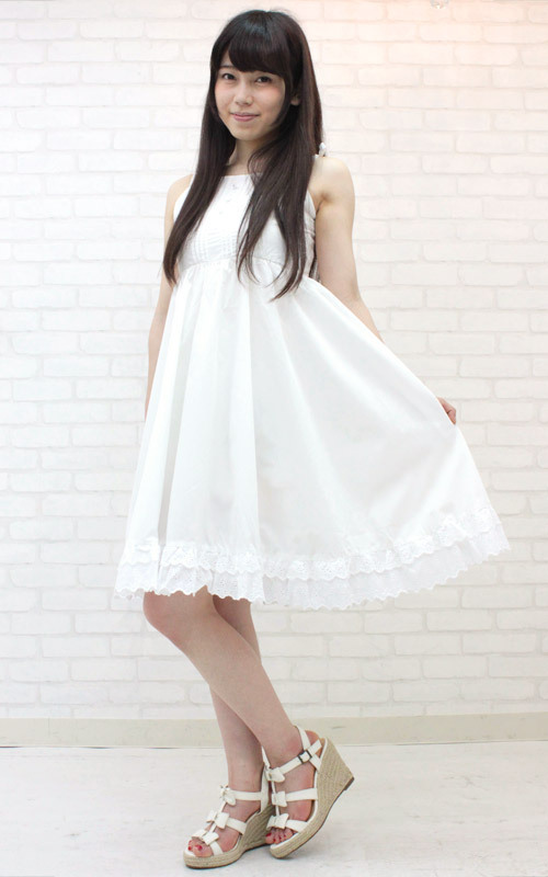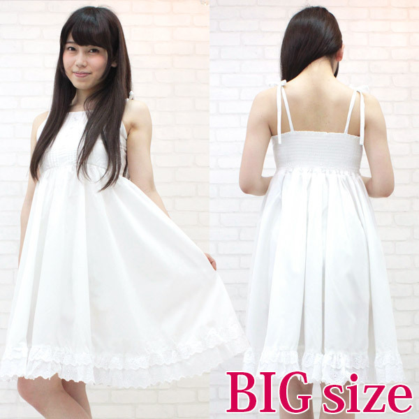 夏のよそいき、お出かけスタイル!BIGサイズでも超可愛い、ホワイトワンピース。 肩紐の可憐なリボン結びや、裾のレースが愛らしい!日焼けした肌にも見事に映えるワンピースは、コーディネイト自在のサマーコスチュームです。