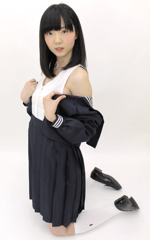 チラリ肌見せ防止!制服のトップスとスカートの隙間をガードするインナーつき吊りスカート。 電車でつり革を持っても、お腹が見えません!慎み深いお嬢様学校の制服でよく見かける、白いノースリーブのインナーと無地の紺色プリーツスカートをボタンで繋ぎとめて、セクシー感を押さえたコスチュームです。