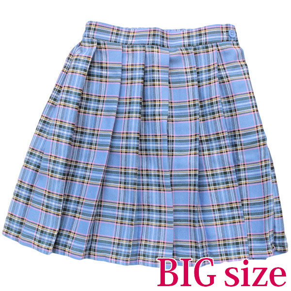 一着は持っておきたいヘビロテアイテム!爽やかな水色のチェック柄プリーツスカート(BIG)。 スカート丈は46cmと少し長め仕上げ!お手持ちのセーラー服にも、ブレザー制服にも合わせられる万能コスチュームです。