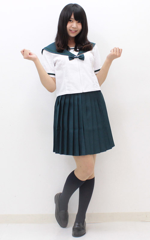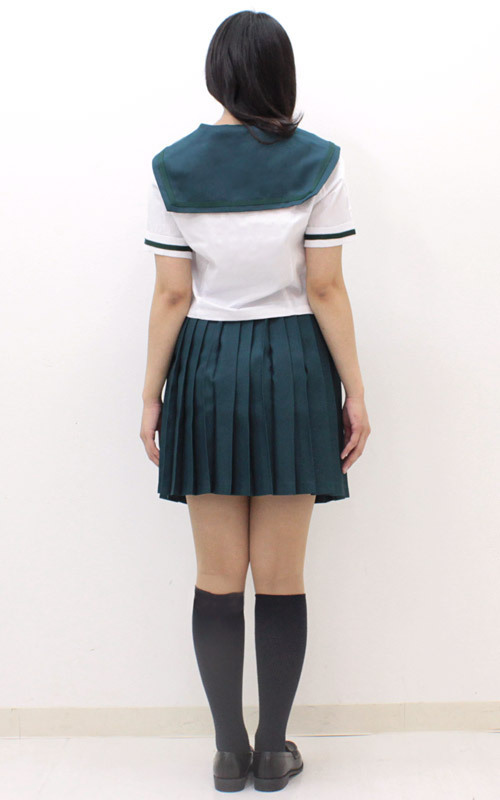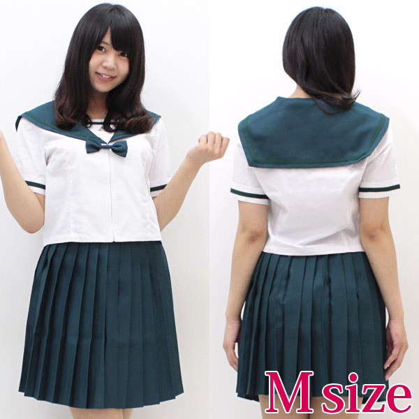 お嬢様学校として有名な学校の夏服セーラー服(M)がついに登場!ちょっぴり珍しい深緑カラーでキュートに仕上げた制服コスプレです。 袖や胸元に入ったラインやリボン、プリーツスカートのどれもが本物そっくり!これを着れば、憧れていたお嬢様学校の一員にアナタもなれますよ。