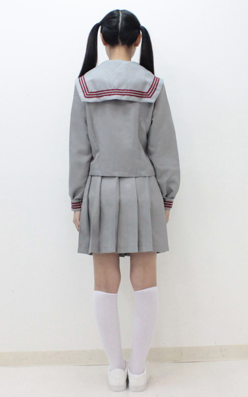 ちょっぴり珍しいグレーカラーで個性をプラス!冬服仕様の長袖セーラー服コスチューム(Mサイズ)。 グレーベースに赤ラインと落ち着いたえんじ色スカーフが印象的なデザイン。 長袖シャツは前ファスナーで簡単に着脱可能です。