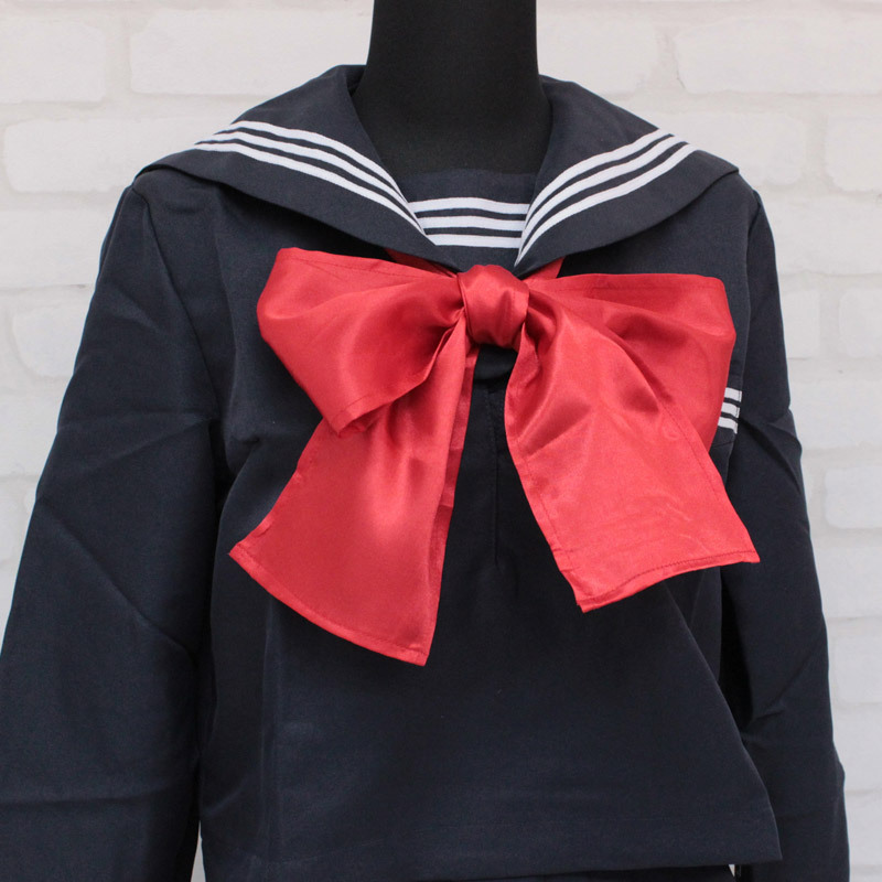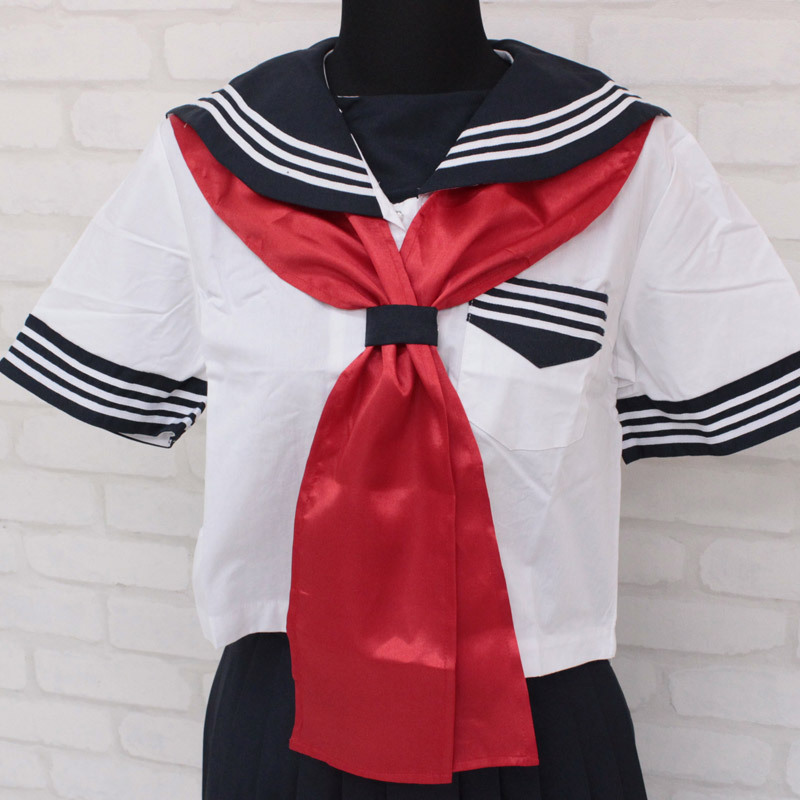 存在感バツグン!セーラー服コスプレには欠かせない、赤色サテンの大きめスカーフ(単品)。 全長165cm、幅12cmの帯状タイプなので、クルッと襟下に巻くだけの簡単仕様。 リボン結びだけでなく、スカーフ留めに通すだけでもOK!アレンジ自在の優秀アイテムです。