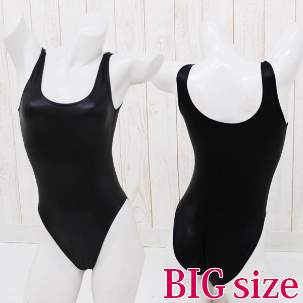 ピッカピカにコーティング!男性も着用可能なBIGサイズのワンピース水着。 ●COOLな黒無地仕立て・ボディラインに沿ってセクシーにツヤめきます●肩紐が太いラウンドネック●足ぐりを大きくカットしたハイレグデザイン●裏地つきでしっかりと縫製してあります。 どこか懐かしい旧スクール水着の雰囲気を取り入れたコスチュームです。