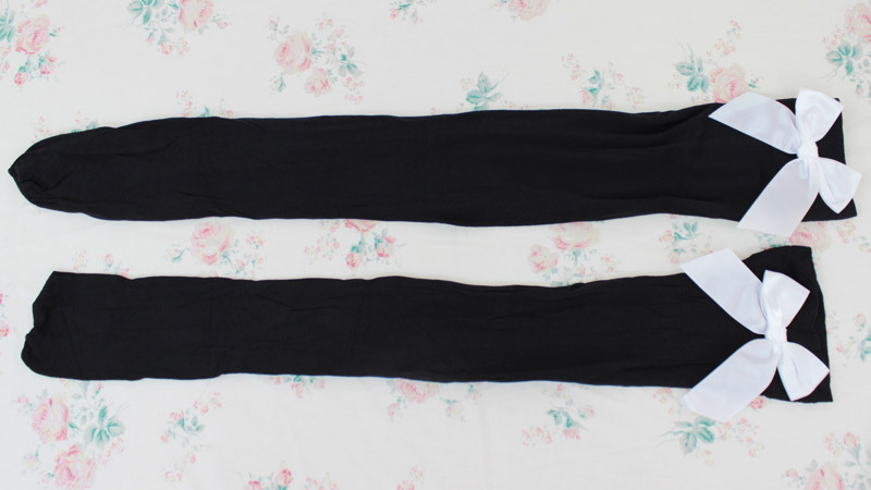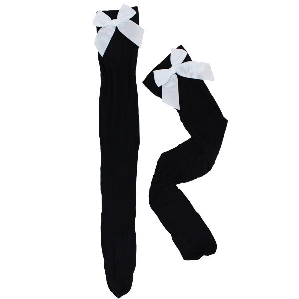 > リボン付きニーハイ 黒×白リボン
