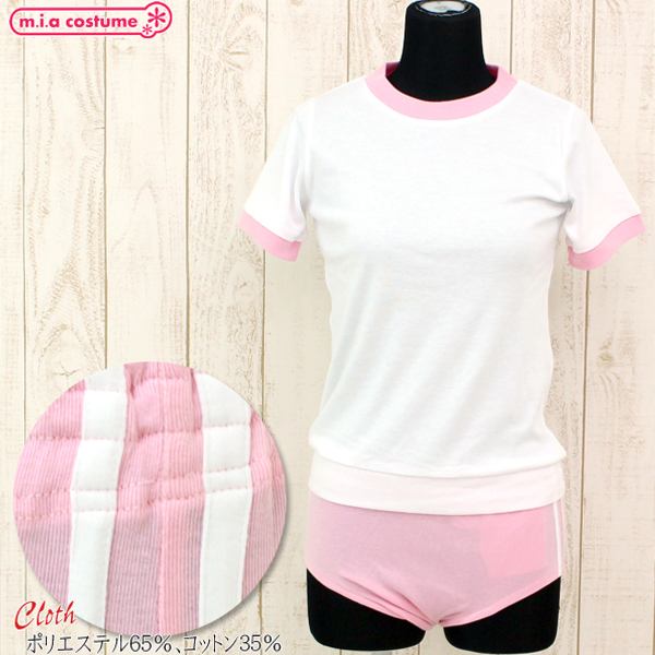 コスプレで人気の体操着に可愛いピンクの上下セットが登場♪ホワイトとピンクの色使いも可愛く、すべすべの素材で伸縮性のある生地を使用しているためこれまでにない着心地を実現しました。 ブルマはサイドに2本の白ライン入りが入っていて手洗いも可能!衛生面もバッチリです。