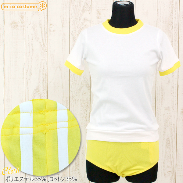 昔懐かしい体操着に身を包む♪男性用の体操服コスプレ。 穿き心地の良いウエストゴムで仕立てたイエローのブルマに、トップスを合わせたシンプルな体操服コスプレです。
