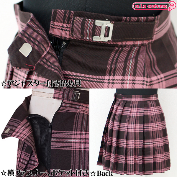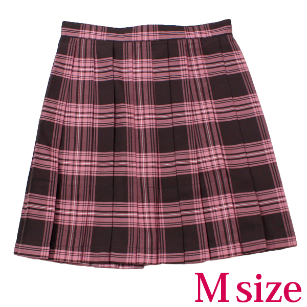 > ポケット付きのチェック柄プリーツスカート単品 ピンク×ブラウン Mサイズ