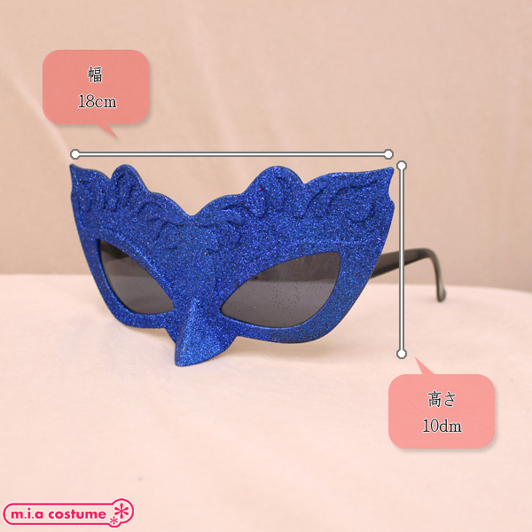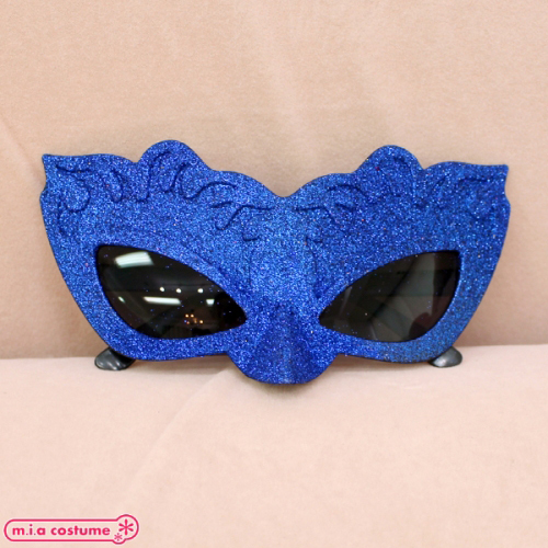 ラメがキラキラと光ってとっても華やか!仮面舞踏会や誕生日パーティ、ハロウィンイベントなどに最適な、手軽に装着できるサングラス仕様の仮面マスク(青)。