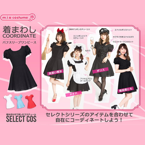 着回し力に定評があるコスプレシリーズ♪パフスリーブワンピースはガーリーなテイストにぴったり。 猫耳カチューシャを合わせれば、お洒落な白猫に変身!着こなしも、着まわしも色々と自分好みでセレクトしてオリジナルのコーディネートが楽しめちゃう♪他にもセレクトシリーズの小物を合わせて色々なコスプレを楽しんでね。