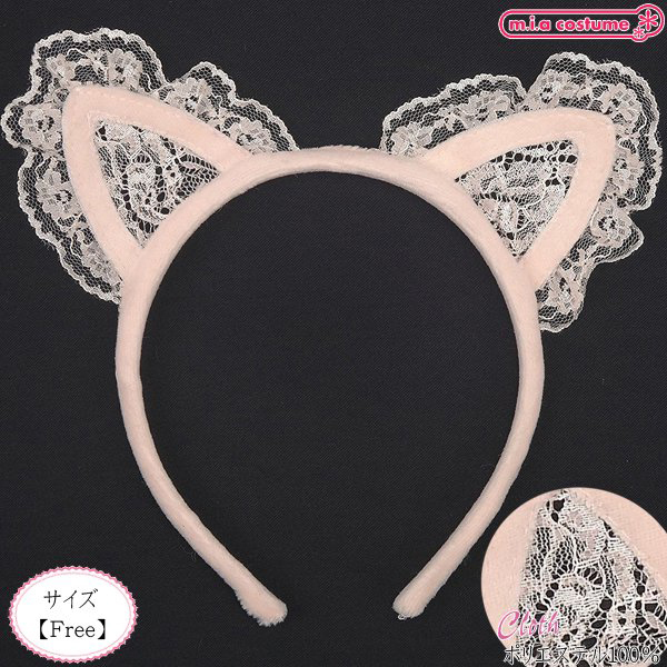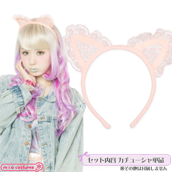 繊細なレースがポイントの猫耳カチューシャで、淡いベビーピンクカラーがとってもキュートな印象にしてくれます♪明るいカラーのウィッグと合わせて着用すれば、さらに可愛さUP!コスプレ小物として持っておきたい一品です♪