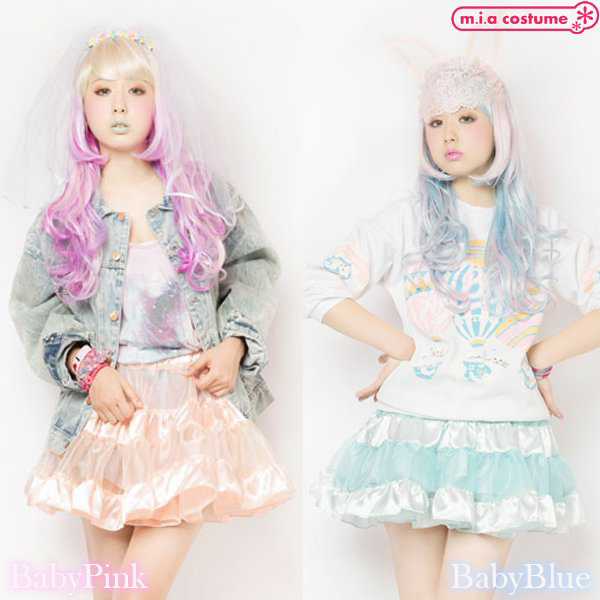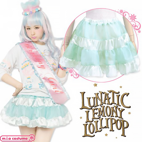 イベント用衣装やパーティーコスプレとしても良さげ♪原宿系カリスマモデル「AMO」がプロデュースする新ブランド「LUNATICLEMONYLOLLIPOP」からティアードスカート(ベビーブルー)が登場!サテンの光沢感とシースルー素材の組み合わせが可愛くて、重ねるボトムスで様々なコーディネイトが楽しめる逸品です。 さわやかなベビーブルーが優しい印象を与えてくれて、ふんわり広がるガーリィなシルエットもポイントです。