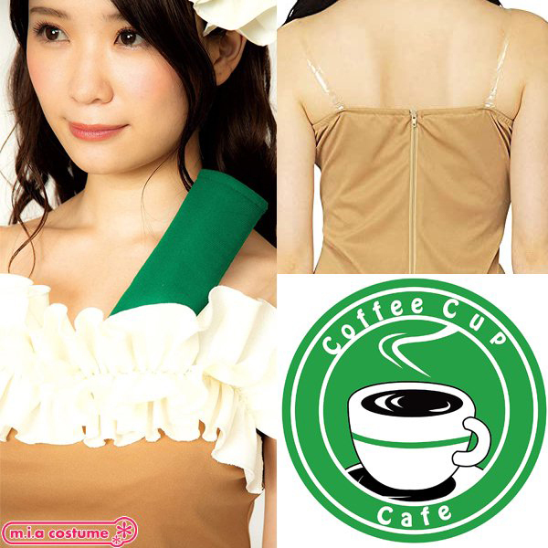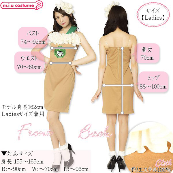 ハロウィン仮装やクリスマスの仮装、変装用のステージ衣装にも!フォームミルクをイメージした胸元のフリルがポイントのワンピースです。 ストレッチ素材なので着やすくコーヒーカラーなワンピースが印象的♪付属のシールを胸元に付ければスタイリッシュなカフェスタッフに!舞台衣装としても映えますよ♪ ※洗濯機不可、塩素系漂白剤による漂白不可、アイロンは中温で当て布使用、ドライクリーニング不可、摩擦や水濡れにより色移りする恐れがあります。