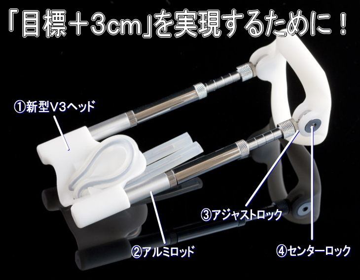 「目標+3cm」を実現するために!純日本製の男性器サイズ増大キットです。 初期型製品をさらに改良し、圧力のかかる部分を分散することによって、より痛みが少なく止まりのいい理想的な着け心地を実現しました。 また、アルミ製ロッドや強化スプリングなど、全て日本製だから出来る高品質製品でアナタ自身とパートナーに喜びを!サイズコンプレックスに悩む男性必見のペニス増大グッズです。