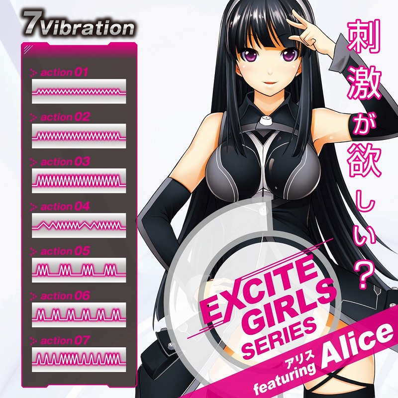 「いつもの刺激じゃ物足りない」という方にオススメ!エキサイトガールズシリーズのバイブ。 パッケージモデル「Alice」の滑らかな曲線を描いた、高級シリコン素材のブラックカラーボディが挿入をサポート!使い方は至って簡単!底に付いたスイッチを押す度に振動が切り替わり、長押しで電源をOFF!7種類の振動を搭載しているので、アナタが一番感じる振動を探しながらお楽しみ頂けます。 膣内に刺激をたっぷり与えてくれるバイブレーターです。 単4電池×2本使用。