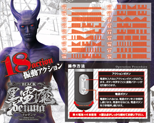 圧倒的な責めに陥落!18種類のバイブパターンを搭載した、快感ラッシュの電マです。 スタイリッシュなブラックボディのハンディサイズ!生活防水設計だから、水に濡れても平気!ヘッドは柔軟に曲がり、簡単操作で悪魔のごときパワフルな震えが快感ポイントを直撃!貴女を快楽の世界へと引き込こむことでしょう。 単4電池×4本使用。